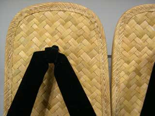 | ※ 網代 ( あじろ ) この雪駄では、竹の皮を 矢羽根編みに してあります。 |