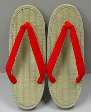 表素材:タタミ表(い草) 花緒素材:ハイミロン(布) 別注花緒:金 銀 デラクール白 価格 : 時価 12足以上 普通版 実寸:長さ23.7p 幅8.5cm 適応サイズ:〜24.5p 指と かかと部分、少々、はみ出ます。適正。 |