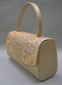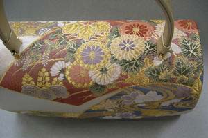 | #帯地バッグ003 | 取手・本体 = 牛皮 かぶせ部分 = 西陣織帯地 絹100% | |