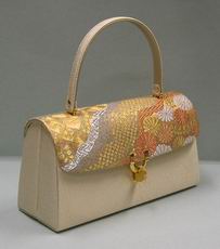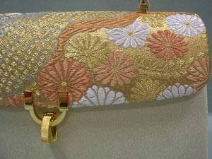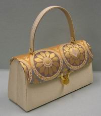 | 取手・本体 = 牛皮 かぶせ部分 = 西陣織 絹100% | ||