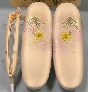 | 手元は、保護のため、和紙が巻かれておりますが、実際は、黒の共皮です。 ぞうり 花緒と脇の螺鈿は、控えめに 程良く 品良く… |
