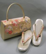 | #帯地S301 バッグ・花緒(帯地部分シルク100%) ぞうり台(牛皮) | |||