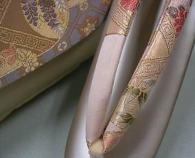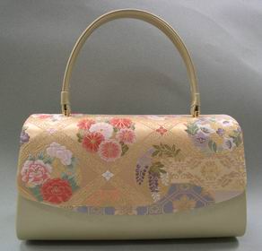 | #帯地S407A バッグ(角型底 折込マチ付き) ぞうり台(牛皮) | バックスタイル | ||