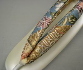 | 取手・本体 = 牛皮 かぶせ部分 = 西陣織 絹100% | ||