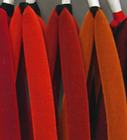(ビロード)花緒 | 本天には、¥2,000〜¥35,000程まで、いくつかの等級があります。 この内、正絹を除く、上質〜最高級の本天を使用しております。 ご注文頂いた色が在庫切れの場合は、1〜2ケ月程お待ち頂く事があります。 1本いっぽん、丁寧に手作りさせて頂いております。ご了承下さい。 |