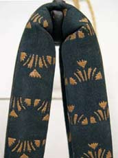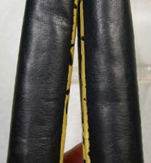 花緒の先坪は、牛皮黒。 花緒の裏は、黒・紺・茶・グレーなどの牛皮です。 当社オリジナル品では無いので、花緒裏の色指定はできません。 |