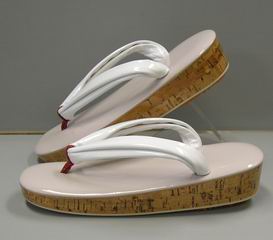 | 花緒 : 総皮 中レール1色入り | ↑ 総皮無地3枚芯 カラー32 純白半月入り | ||