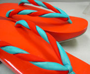 Mサイズのみ 水色と赤の2本を よって(編んで)1本に した、凝った花緒です |