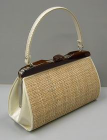 | 両面 馬来草 | ↓ マチ部分 もみ皮 | ↑ 口金はプラスチック使い 中ポケット 1ヶ所 ↓ |