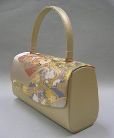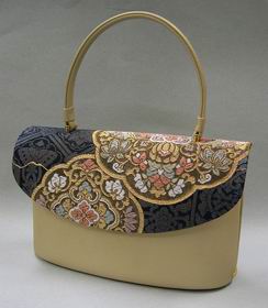 | #帯地バッグ003 | 取手・本体 = 牛皮 かぶせ部分 = 西陣織帯地 絹100% | |