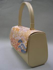 取 手 ・ 本 体 = 牛 皮 かぶせ部分=西陣織 絹100% |