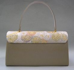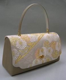 | 取手・本体 = 牛皮 かぶせ部分 = 西陣織 絹100% | ||