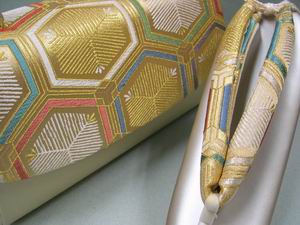 | #帯地S407A バッグ(角型底 折込マチ付き) ぞうり台(牛皮) | バックスタイル | ||